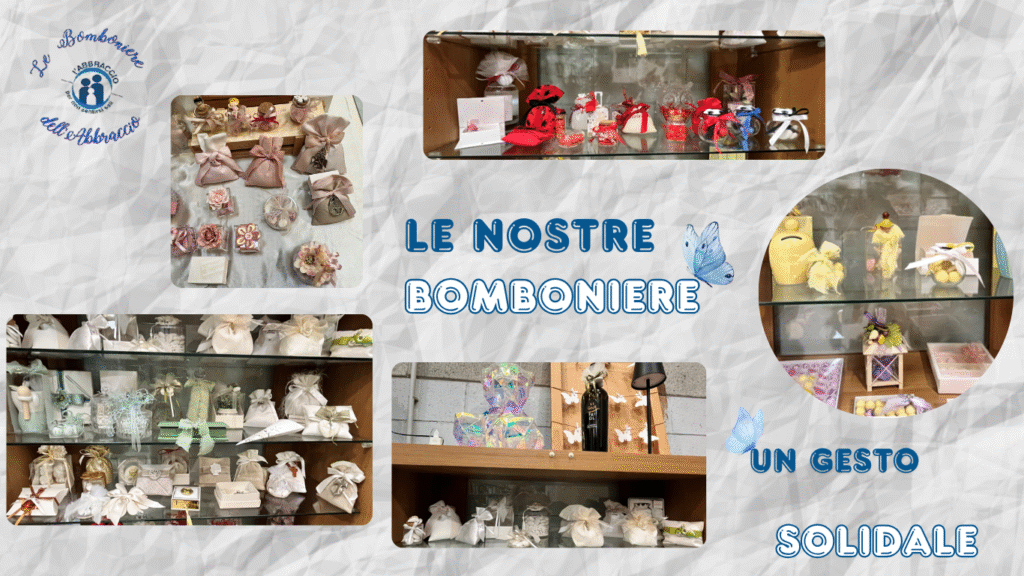 Scegliere le bomboniere solidali è un gesto di grande solidarietà e contribuisce ad aiutare le attività de l’ABBRACCIO OdV e, di conseguenza, i bambini e le famiglie che ad essa fanno riferimento. Qualunque sia la ricorrenza, le bomboniere solidali rappresentano un modo diverso per ricordare, ad amici e parenti, un lieto evento e costituiscono per noi un gesto di aiuto concreto.